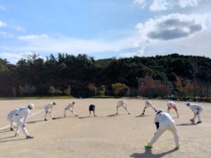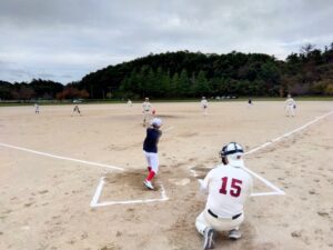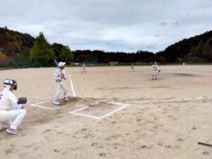 当日は準備運動とシートノックを行った後、チーム内での練習試合を実施。